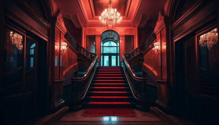 Luxury staircase illuminated by modern lighting equipment generated by artificial intelligence