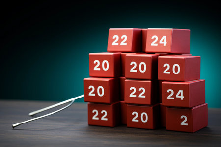 Woman finger pointing at the number 20 on an advent calendar.