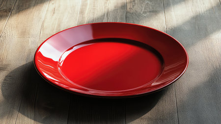 This vibrant arrangement features glossy red plates with droplets, paired with silver forks, ideal for stylish dining concepts and elegant presentations.