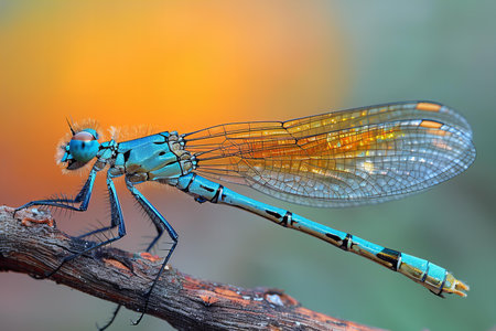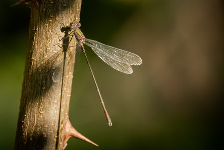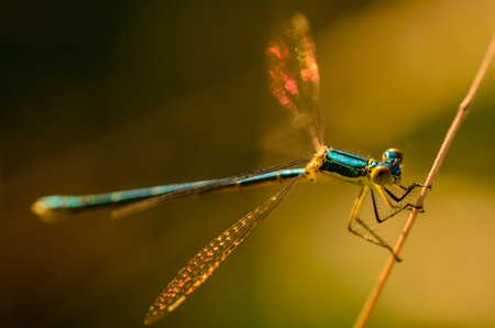 Beautiful damselfly glowing inthe late afternoon sunlight