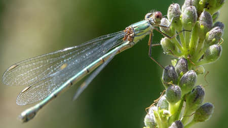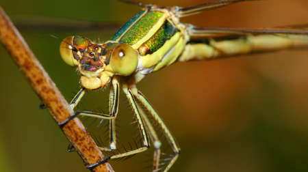 Emerald Damselfly or Common Spreadwing Lestes sponsa dragonfly in Japan