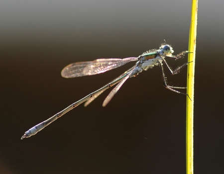 Willow Emerald Damselfly, Chalcolestes viridis. Profile.