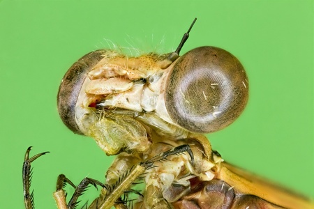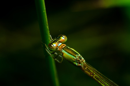 Macro shots, showing of eyes dragonfly and wings detail. Beautiful dragonfly in the nature habitat.