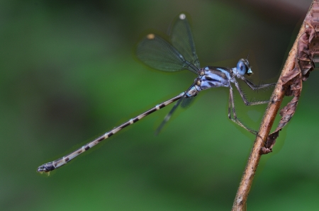 Blue-spotted Flatwing damselfly Podolestes orientalis