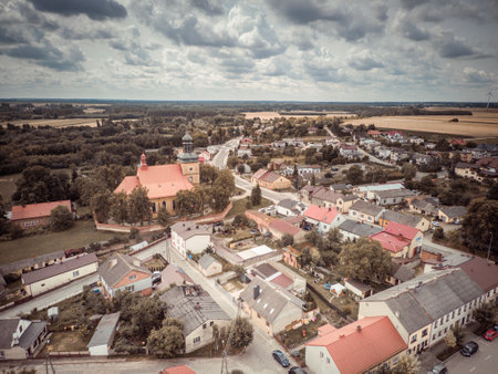 View from drone of Skierniewice cityscape on sunny spring day, Lodz Province, Poland