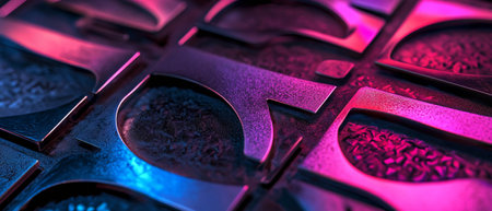 Detailed view of metal letters on a dark black surface, Experimenting with different typography styles for marketing campaigns