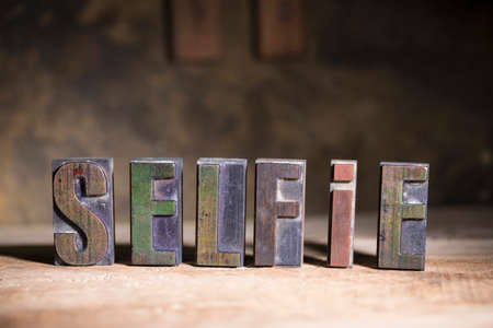 Letterpress letters spelling the word Selfie