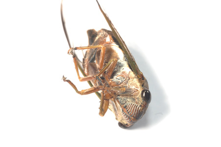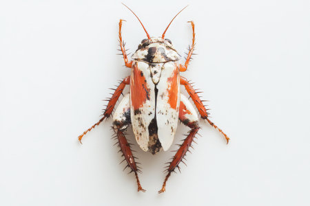 Top view of a dead cockroach on a white background, highlighting insect anatomy and details