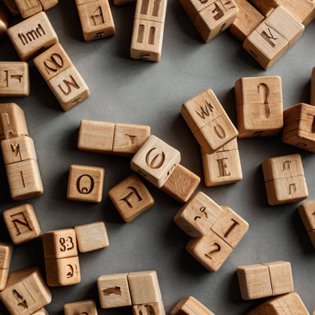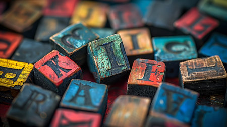 Wooden alphabet blocks on a textured surface