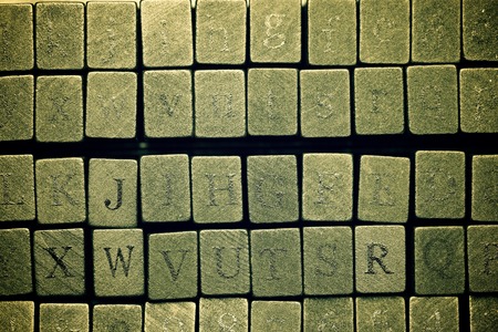 Blurred Text dice cube background. abstract blur. Text dice cube concept / Letter dices alphabet on wooden background. Block of alphabet studded on the floor. vintage style.
