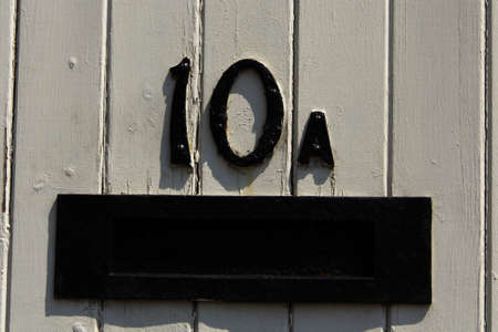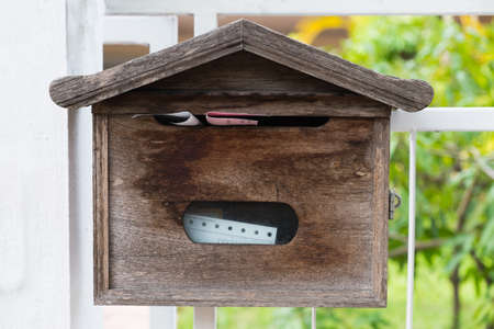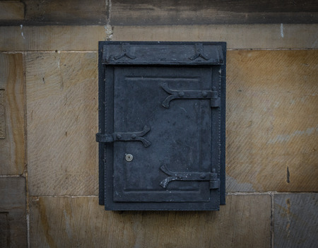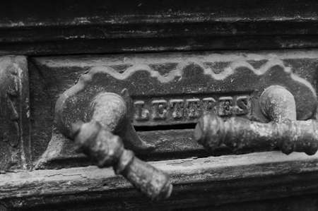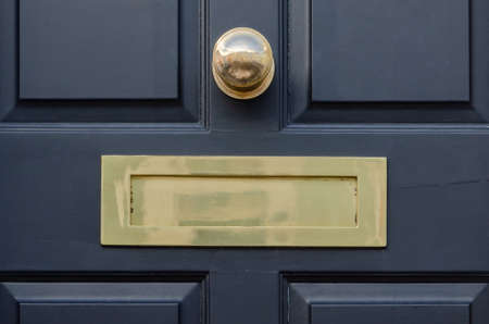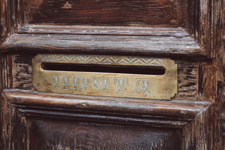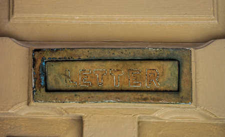 Old letterbox in the door, traditional way of delivering letters to the house, old mailbox, correspondence