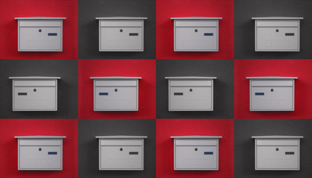 red mailbox with documents overflowing, mailbox hasn't been opened for a long time, red mailboxes on red walls