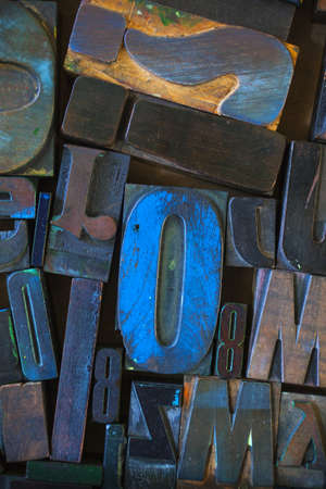 wooden letters blocks from old letterpress alphabet used for typesetting