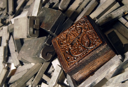 Random arrangement of letterpress lead letters in block