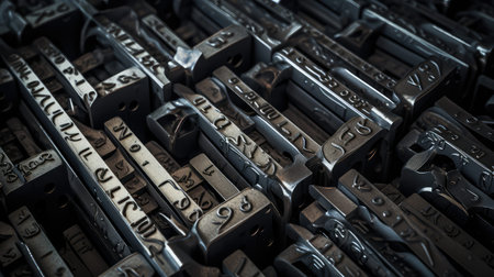 A close up of a bunch of old type letters on top of each other, AI