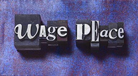 The phrase Wage Peace in letterpress type