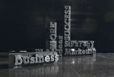 Close up of old used metal typeset letters