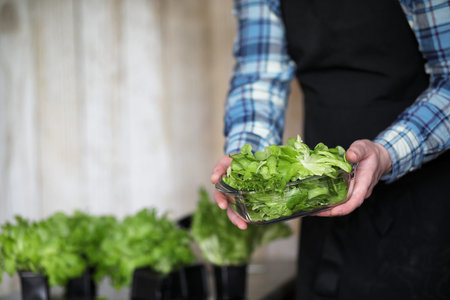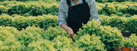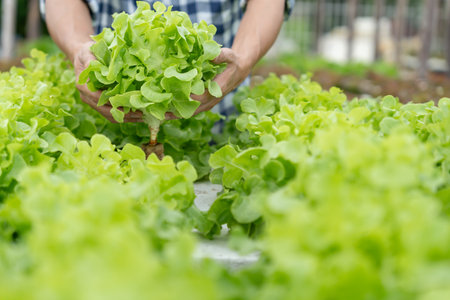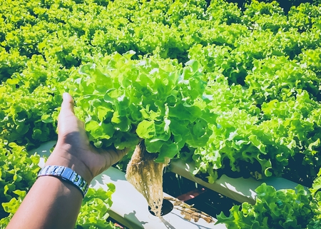 farmer cultivate healthy nutrition organic salad vegetables in hydroponic agribusiness farm.