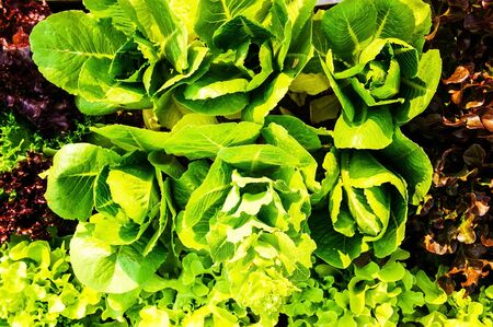 Growing vegetables in the garden. lettuce patch in the vegetable field under sunshine.