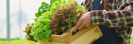 Organic farming, salad farm. Farmers harvest show salad vegetables. Hydroponics vegetable grow naturally. greenhouse garden, Ecological Biological, Healthy,