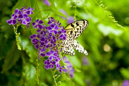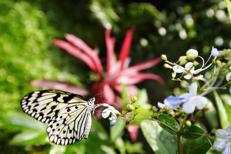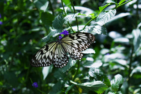 White Tree Nymph butterfly on flower in butterfly garden