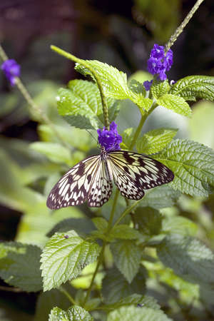 White tree nymph (Idea leuconoe) on purple flower