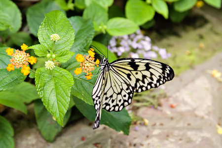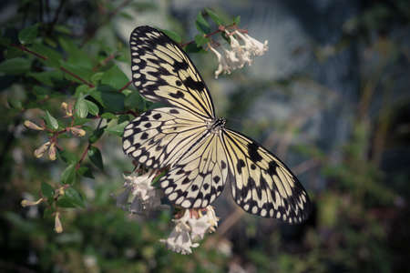 The Rice Paper butterfly (Idea Leuconoe) in garden of Niagara Falls Ontario, Canada