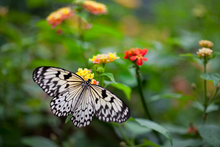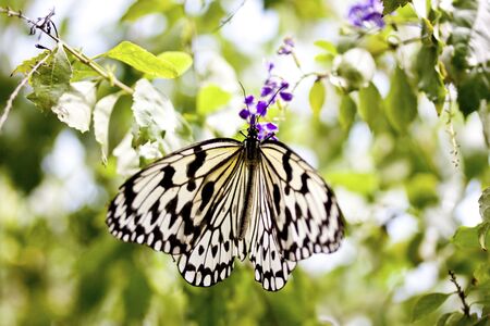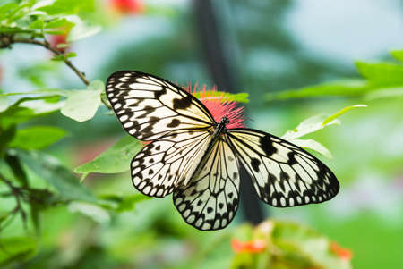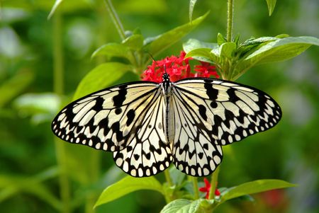 Black and white butterfly Idea leucanoe on flower