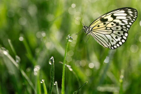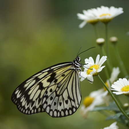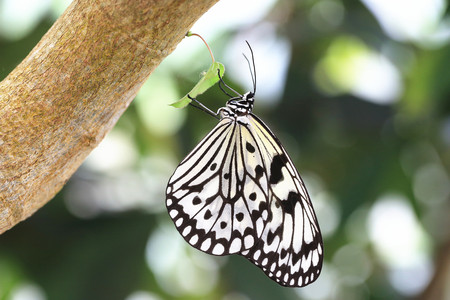 white tree nymph butterfly (lat. idea leuconoe) with green out of focus background