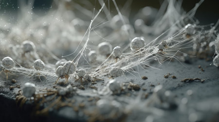 Fungi Trichophyton mentagrophytes, 3D illustration showing branched conidiophores bearing spherical microconidia. Causes skin infection (ringworm), hair and nail infections