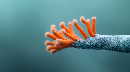 a close-up portrait photograph showcasing the intricate details of unknown helicobacter pylori biological virus alien flowers. the image captures the brittle yet beautiful and elegant nature of these flowers, with vivid contrast and depth of field. shot on a 100mm lens at f/2.0, the photo exhibits rich black tones and crisp details. the natural lighting adds a realistic and impressive touch to this 8k uhd