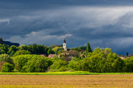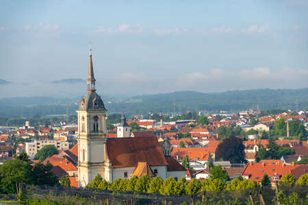 Panoramic view of Slovenska Bistrica, Slovenia, the church of St. Bartholomew dominates the towns skyline