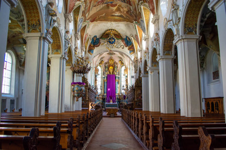 LINDAU, BAVARIA, GERMANY, JUNE 05, 2022: Rococo and baroque decors in Lindau abbey, church of our lady virgin mary