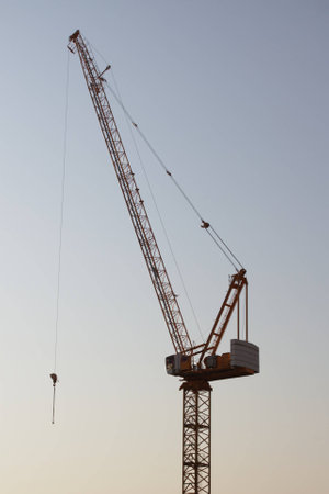 A construction crane on a construction site with clear skies in the background (Pesaro, Italy, Europe)