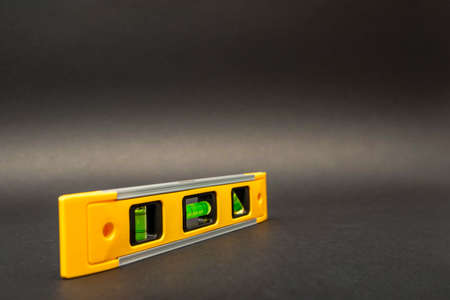 Yellow spirit level on the yellow with some copy space