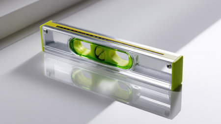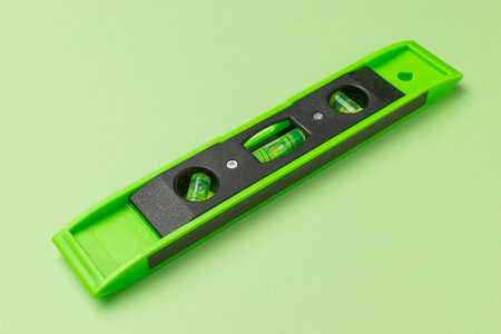 Green Level Tool on Light Green Background: Precision and Balance in Modern DIY and Construction Photography