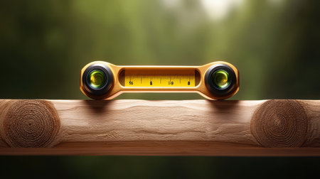 A high-quality image of a spirit level aligned perfectly on a wooden beam.