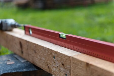 building level lies. measure the horizon by building level. measuring device joiner builder. device