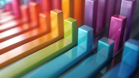 A gradient-colored bar graph with subtle shadows and reflections, giving a professional, clean look for data analysis in business settings.