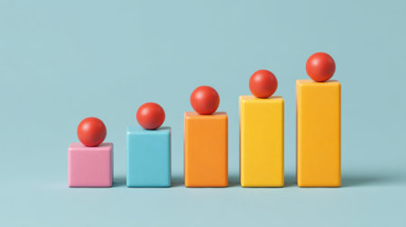 This image features colorful wooden blocks arranged in ascending order, representing growth and analysis in business metrics and statistics. Perfect for visualizing progress.
