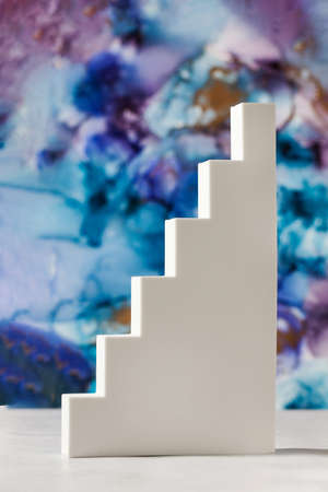 Minimalistic composition of pink stairs on a purple background. Career growth concept, striving up