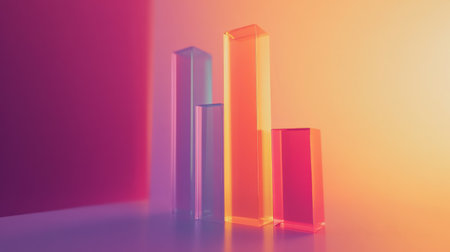 A visually striking arrangement of colorful translucent bars creates an artistic display of light and shadow, perfect for modern design projects and vibrant backgrounds.