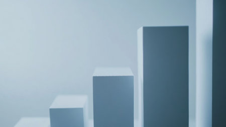 This image features a series of abstract white blocks symbolizing growth and progress in the business world. It represents concepts of achievement and innovation.