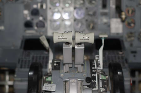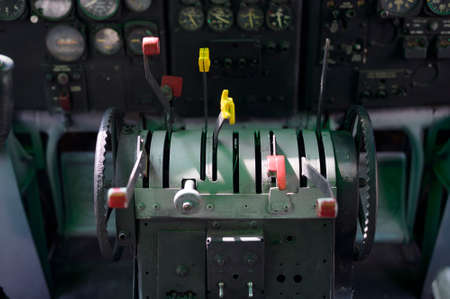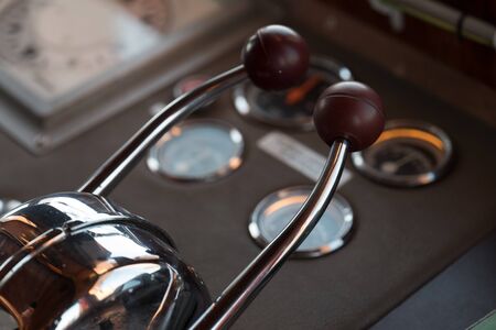 Close up of old vintage airplane cockpit Flight Deck control panel