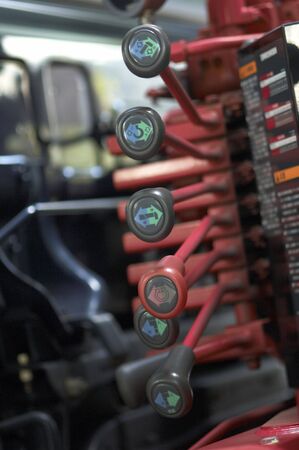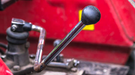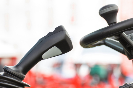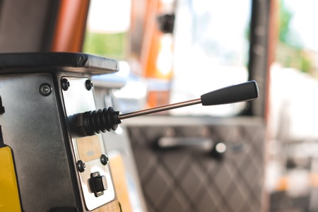 Close-up at controlling lever switch of crane truck vehicle, using to operate for lifting system.