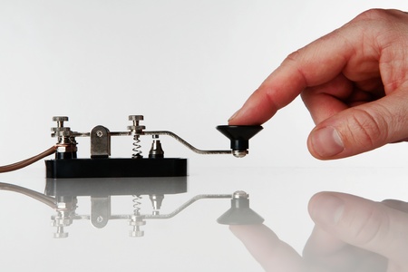 A closeup view of a vintage control panel featuring a test button and multiple switches for industrial or technological settings
