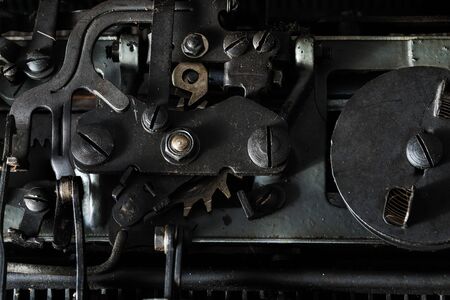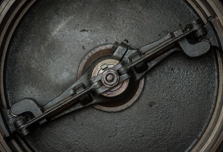 Old machinery close-up. Retro style mechanism, gear, metal cogwheels