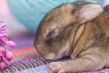 small baby bunny with closed eyes