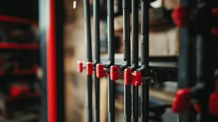 Detail shot of clamps and tools in a workshop setting, highlighting the organization and functionality essential for various DIY and woodworking projects.
