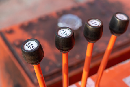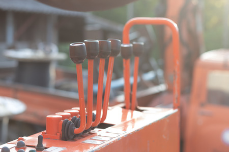 Close-up at controlling lever swtich of crane truck vehicle, using to operate for lifting system.